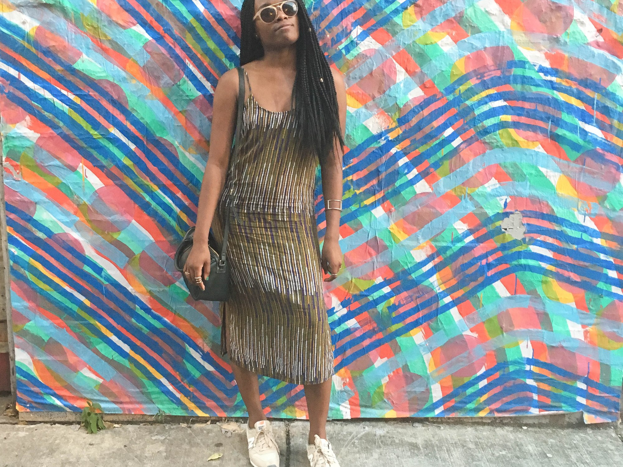 Slip dresses are popping up everywhere from magazines to runways. The thing that I love about slip dresses are that they are so versatile. On the agenda today was a visit to a new pop up beer garden. I decided to be chic yet comfy, I paired my geometric slip dresses with my favorite pair of new balances. I mean what’s more comfier than sneakers?