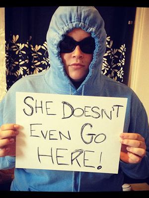 The hilarious line “She doesn’t even go here” is still a classic. You’ll need a hoodie, sunglasses and a piece of blank paper to pull this look off.
