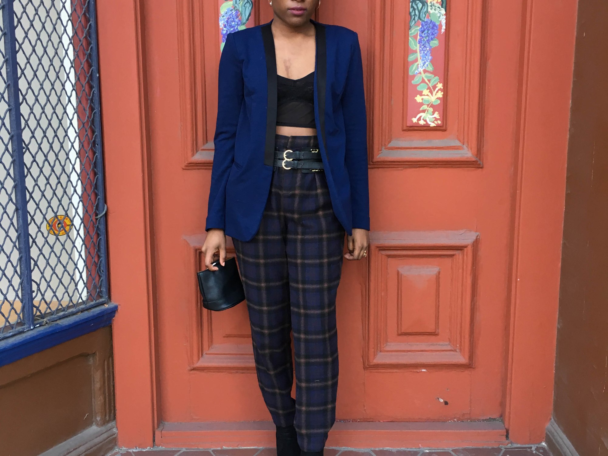 I can not get enough of these plaid pants! When I’d came across these pants in the store, I automatically purchased them. There’s no shame in my game!  These pants are perfect for work events, nights out with friends or even a job interview. It can also serve as an easy day to night outfit for last minute plans. For today’s look, I paired my lovely plaid pants with a black bralette and a blazer. I added my black and gold corset belt to give the look a little flare and edge.