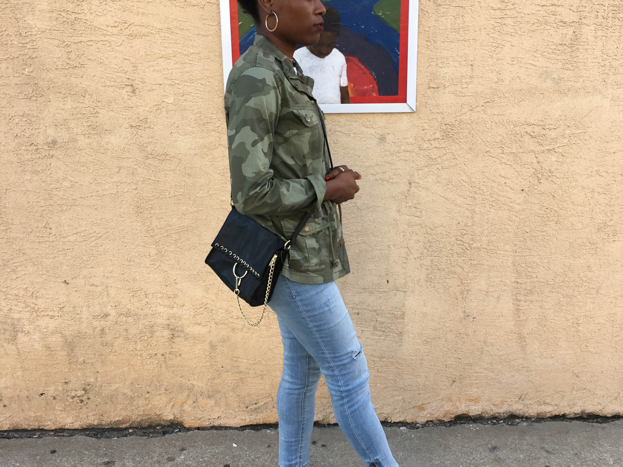 For today’s post, I wanted to take on the camouflage trend. I love camo, it literally works well with almost anything! For my take on the trend, I wore a camo jacket which is a perfect lightweight jacket for spring. I paired the jacket with a basic white tee and distressed denim. In honor of it officially being spring, I gave my feet a little sun with some classic black heels. This look is perfect for date night, running errands, and casual friendly meet-ups.