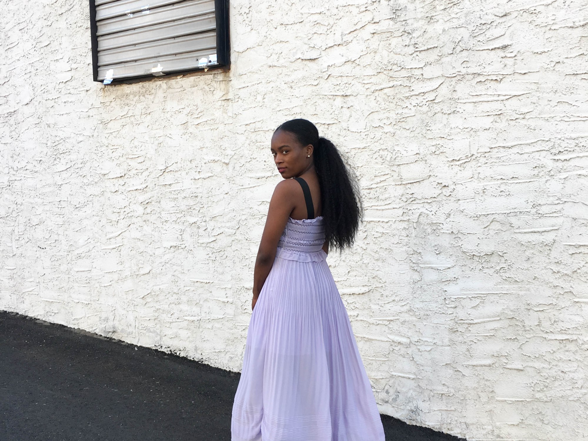 Lilac is the color this season! I love expanding my color palette and what’s a better time to expand color palettes than in the Spring. This lightweight pleated dress is perfect for a day out with friends or an upcoming tropical vacation. I paired today’s look with sneakers and a clear handbag. What’s your take on lilac this season?